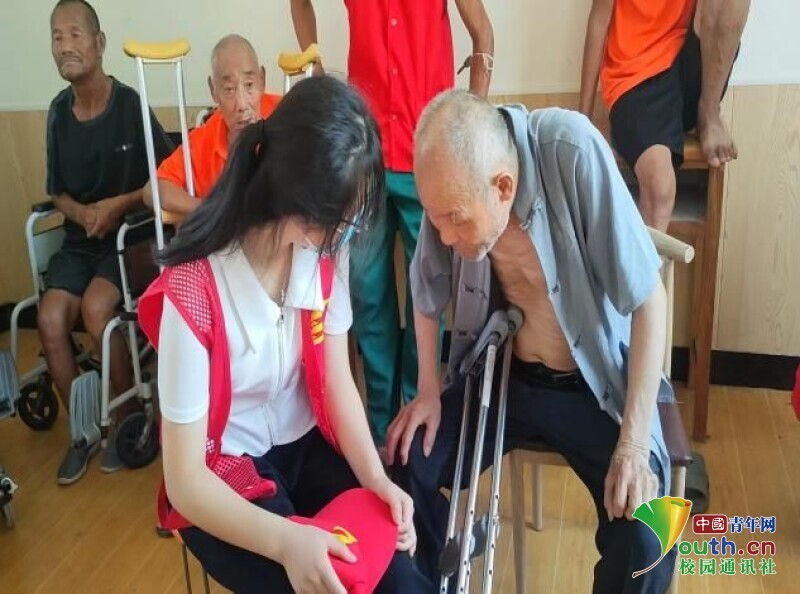 圖為隊(duì)員們正在與休息室中的老人們交談。中國青年網(wǎng)通訊員 雷小麗 供圖