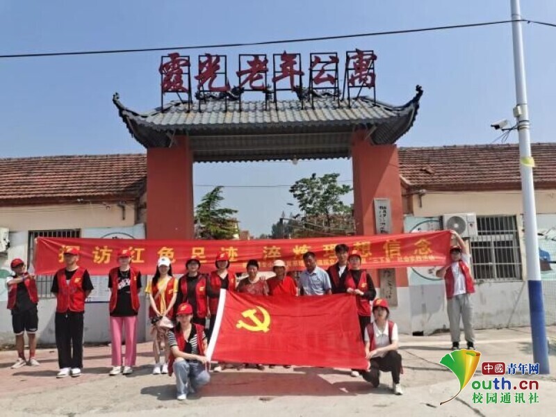 圖為隊(duì)員們在老年公寓門前與老年公寓負(fù)責(zé)人匯合。中國青年網(wǎng)通訊員 孫博宇 供圖